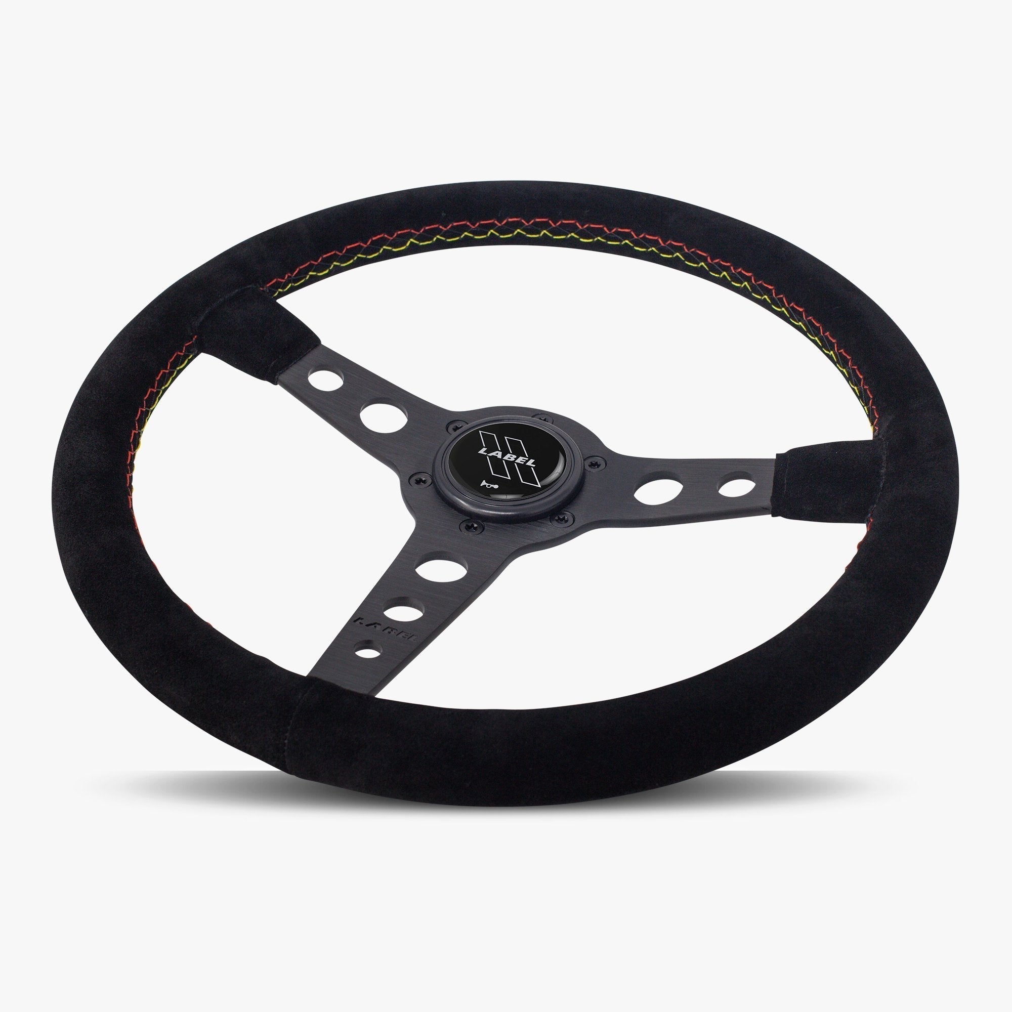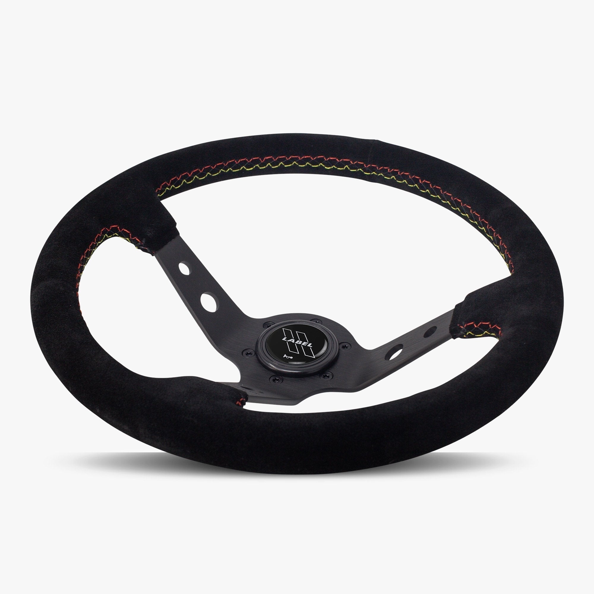The Daytona | Black Alcantara Suede | Black Spoke | Euro Stitch