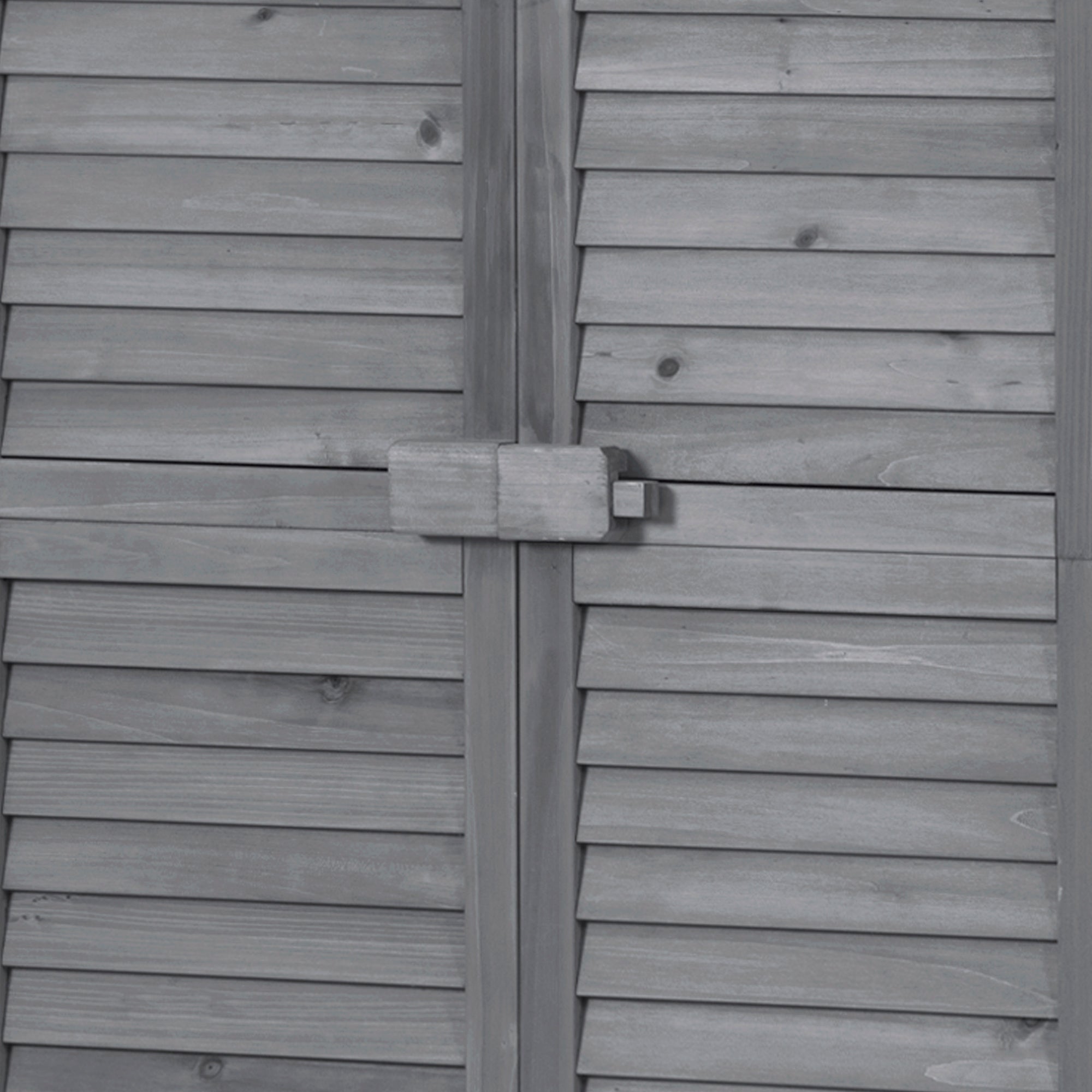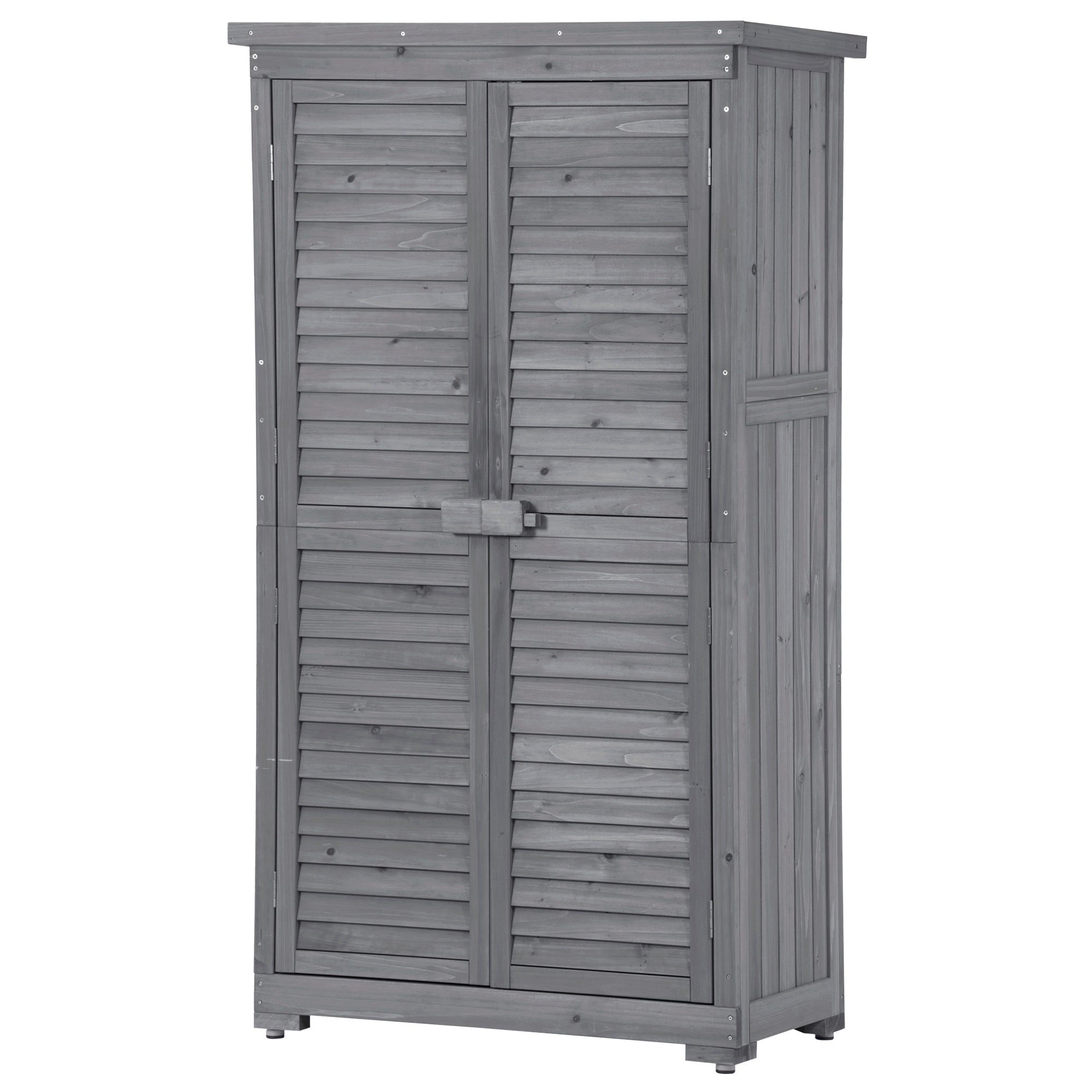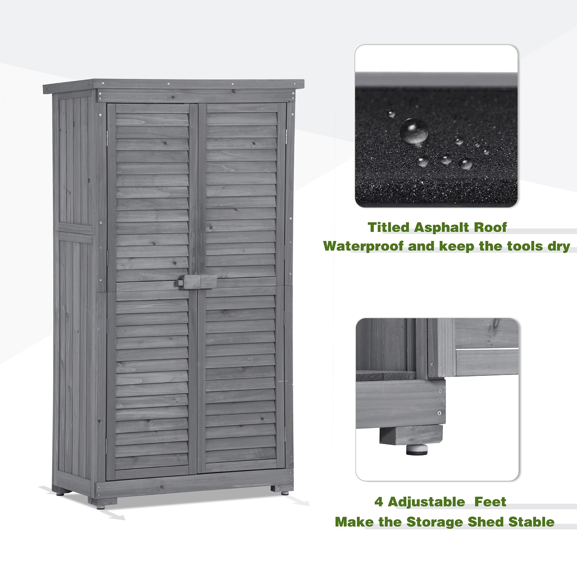 Wooden Garden Shed 3-tier Patio Storage Cabinet Outdoor Organizer Wooden Lockers with Fir Wood (Gray Wood Color -Shutter Design)